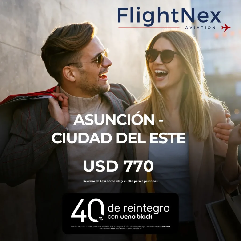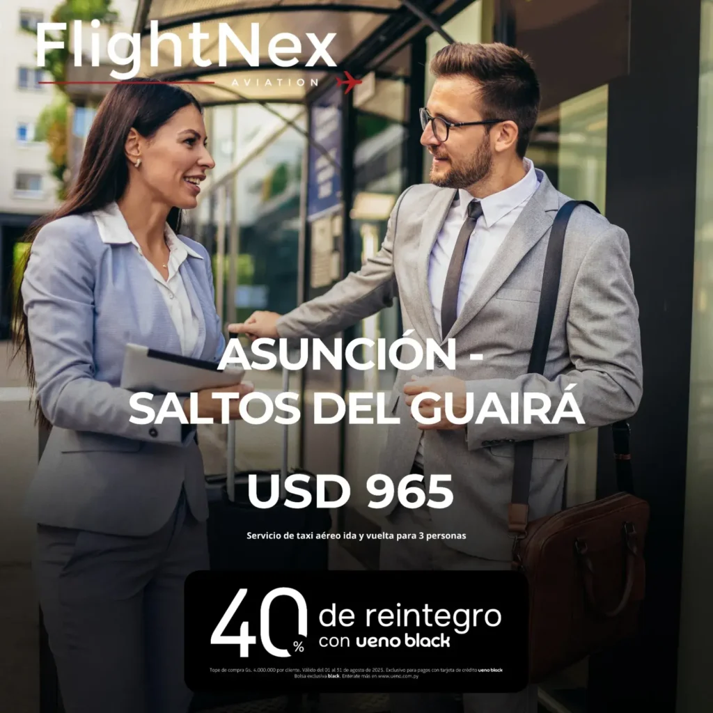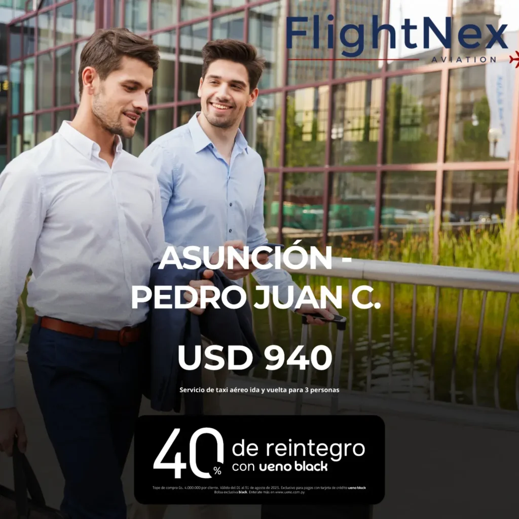 Gracias a la alianza entre FlightNex Aviation y UENO Bank, nuestros pasajeros acceden a beneficios exclusivos que transforman cada vuelo en una experiencia aún más gratificante.
